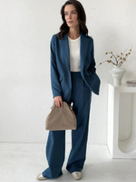 Изначально начинала собирать капсулу на основе синего брючного костюма, но в конечном итоге он не стал центральным элементом. В результате получилась полноценная капсула на каждый день.В составе: брючный костюм, яркие джинсы, юбка и шесть подходящих к ним верхов, искусственная шуба с принтом, обувь и аксессуары.